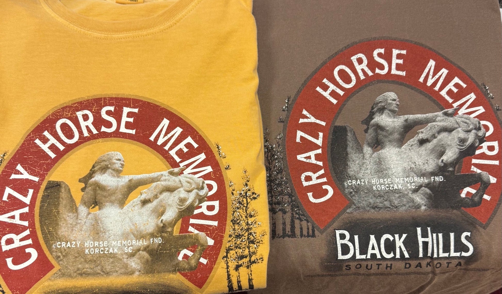 This T-shirt captures the beautiful Scale Model of Crazy Horse Memorial®. Sizes S through 3XL Unisex. Available in Coffee Bean and Mustard Yellow.